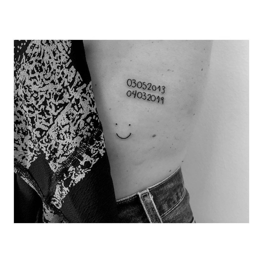 Συγκεκριμένα, η Κατερίνα Παπουτσάκη έγραψε στον κορμό της τις ημερομηνίες γέννησης των γιων της, του Μάξιμου και του Κίμωνα, μαζί με ένα χαμογελάκι.