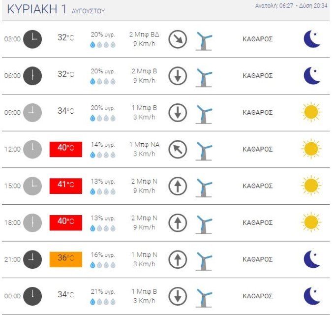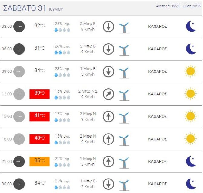 Οπως προκύπτει από τα στοιχεία του meteo.gr, σε πολλές περιοχές η θερμοκρασία την ημέρα θα σπάσει το φράγμα των 40 και 41 βαθμών Κελσίου. Το πρόβλημα, όμως, θα είναι μεγαλύτερο το βράδυ, καθώς οι θερμοκρασίες δεν θα υποχωρούν.