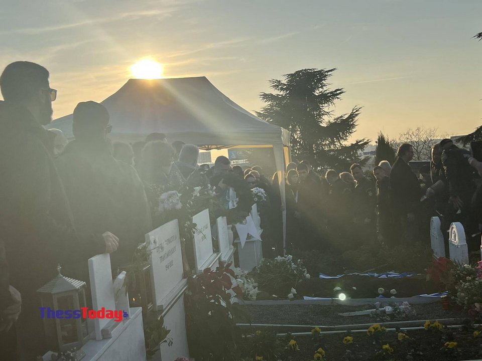 Στην τελευταία του κατοικία στα Κοιμητήρια Αναστάσεως του Κυρίου στη Θέρμη συνόδευσαν συγγενείς και φίλοι τον 31χρονο αστυνομικό, Γιώργο Λυγγερίδη.