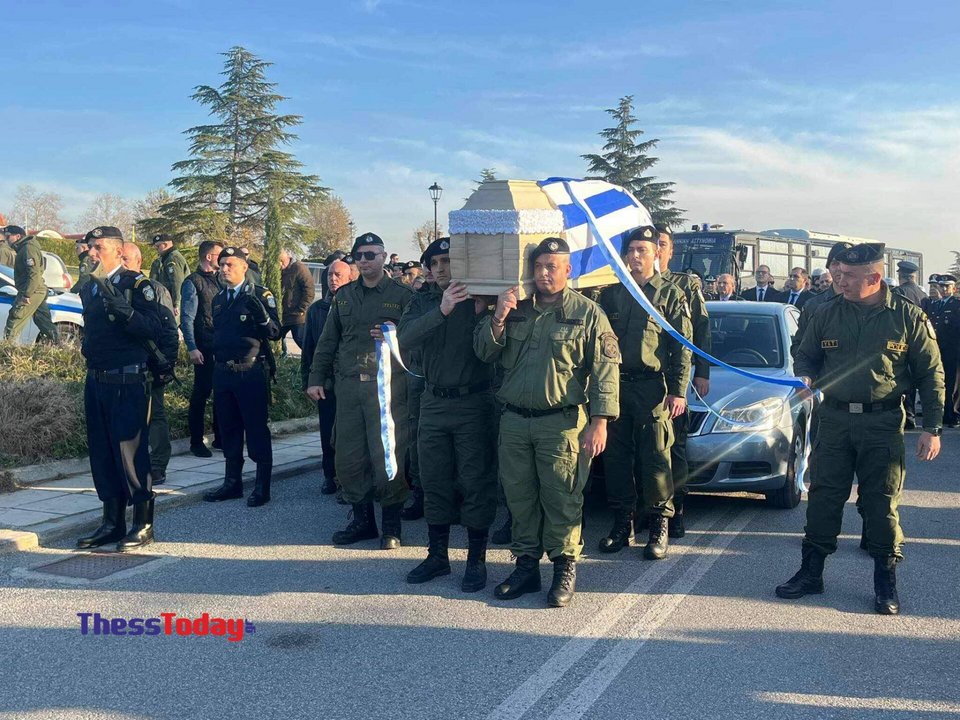Υπενθυμίζεται ότι συνάδελφοι του 31χρονου αστυνομικού τον συνόδευσαν από τον ιερό ναό του Αγίου Δημητρίου στην τελευταία του κατοικία, στα κοιμητήρια Θέρμης, με μια μεγάλη πομπή από περιπολικά, δίκυκλα και κλούβες.