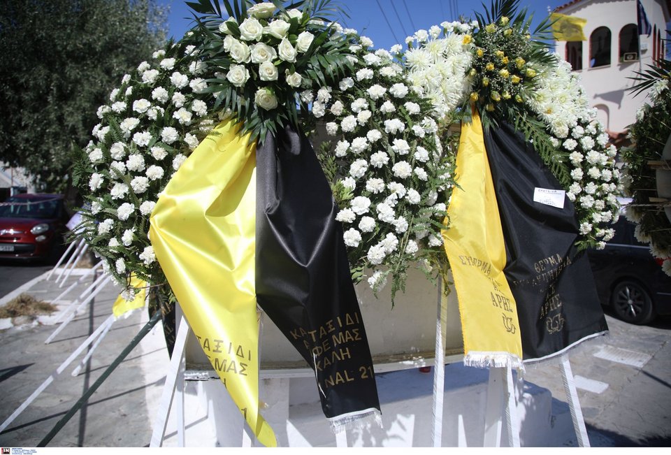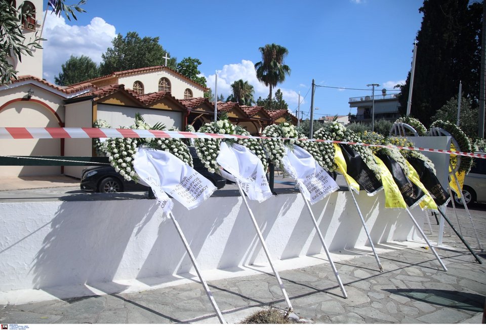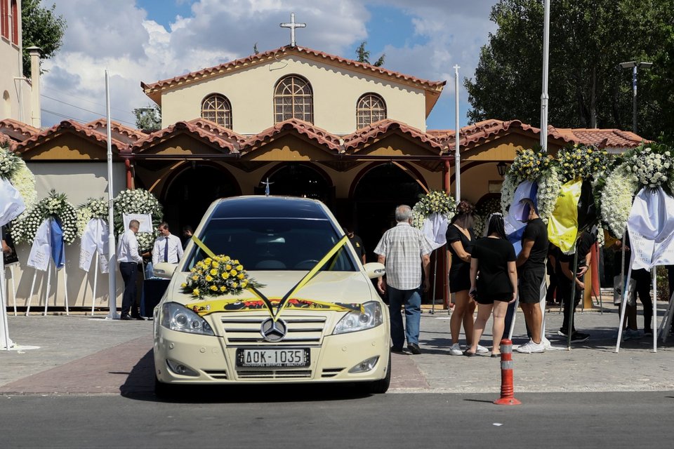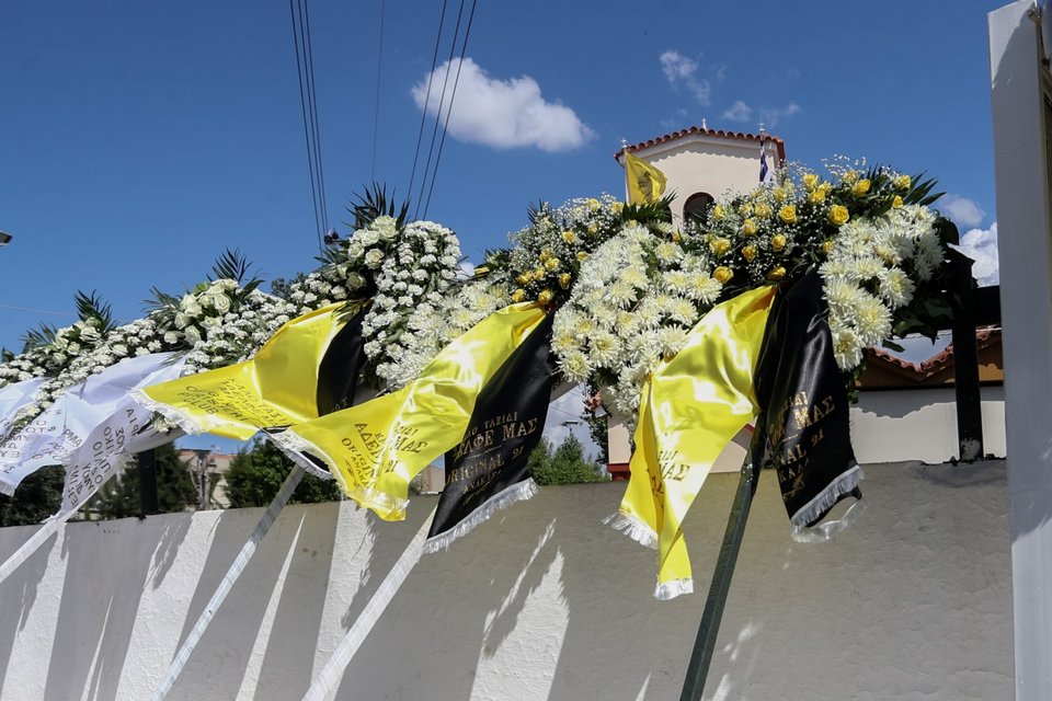 Η εξόδιος ακολουθία ξεκίνησε στις 5 το απόγευμα στον ιερό ναό Αγίου Κωνσταντίνου, στην Ελευσίνα.