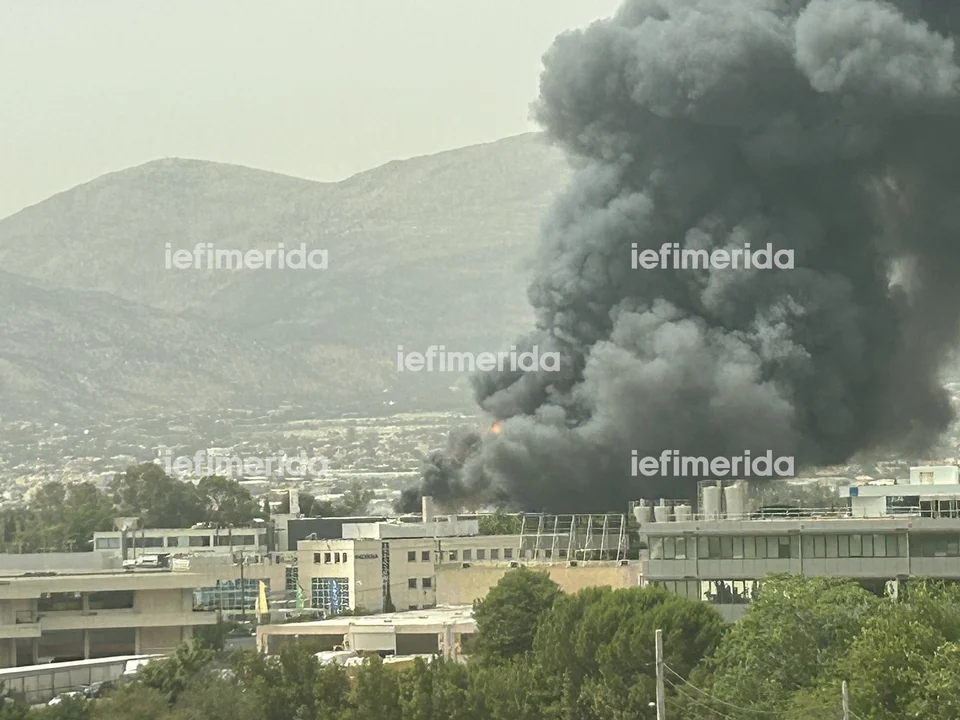 Μεγάλη φωτιά προκλήθηκε το μεσημέρι της Τετάρτης (12/6) μετά από έκρηξη που σημειώθηκε σε εργοστάσιο κατασκευής μαγειρικών σκευών στην Κάτω Κηφισιά.