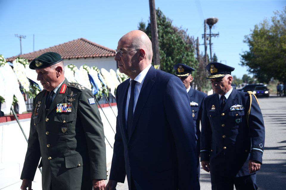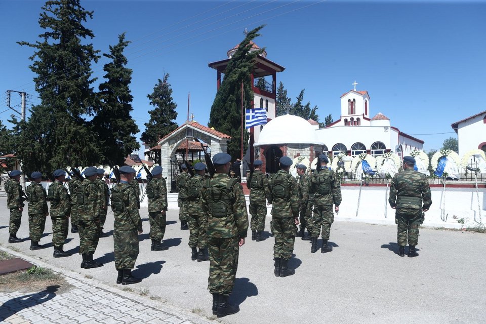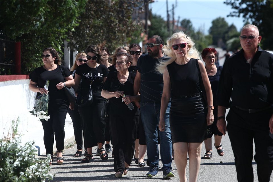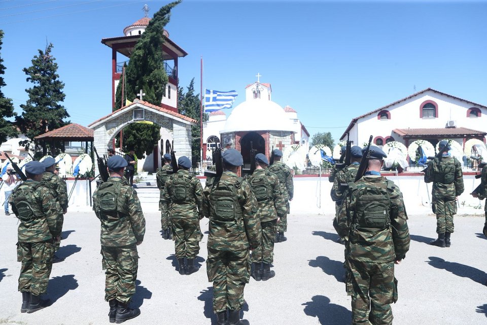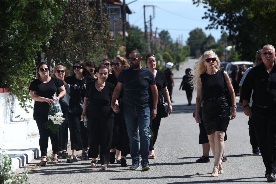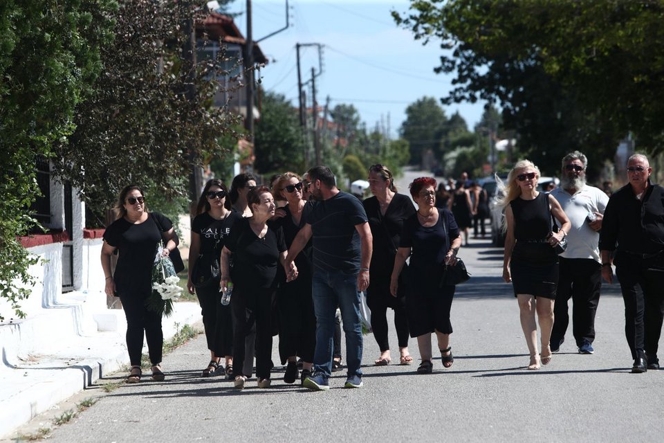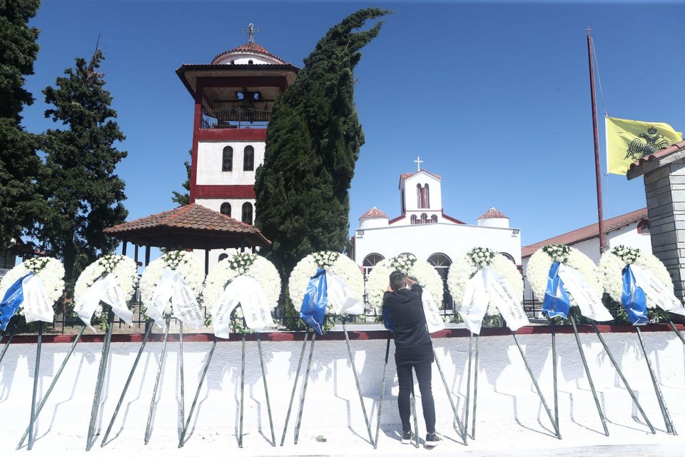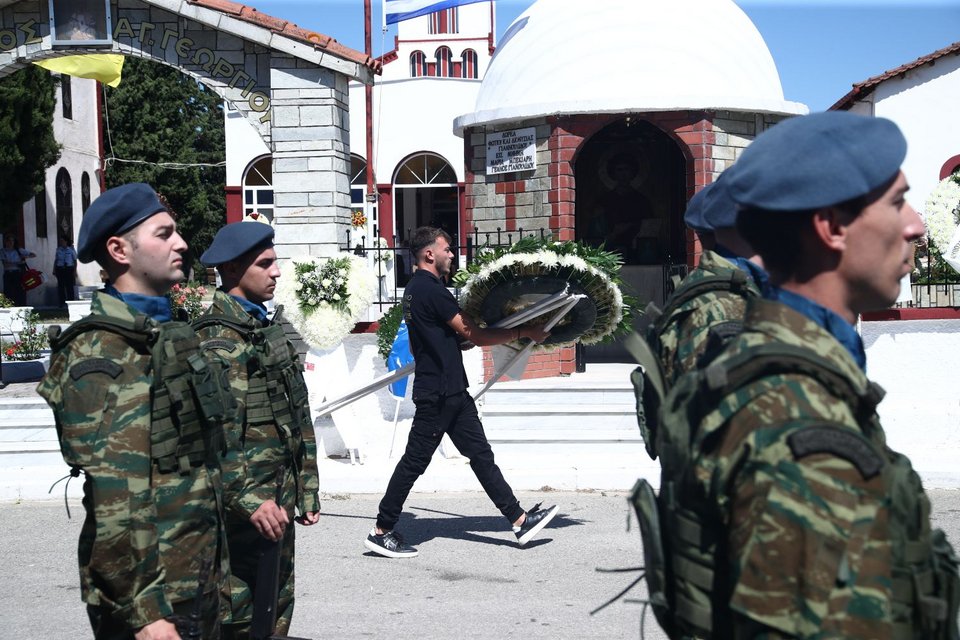 Η εξόδιος ακολουθία του πιλότου ξεκίνησε στις 5 το απόγευμα στον ιερό ναό Αγίου Γεωργίου Παλιού Αγιονερίου, παρουσία του πρωθυπουργού Κυριάκου Μητσοτάκη και του υπουργού Άμυνας Νίκου Δένδια.
