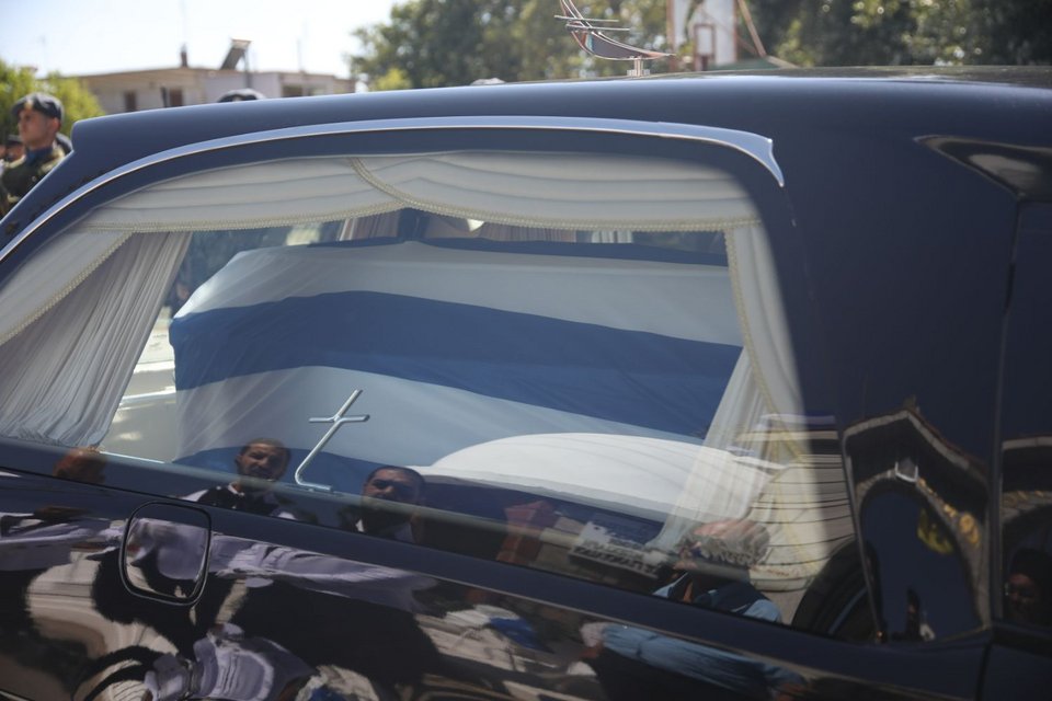 Λίγο πριν από τις 16:20 έφτασε στην εκκλησία το φέρετρο με τη σορό του Περικλή Στεφανίδη, τυλιγμένο με τη γαλανόλευκη.