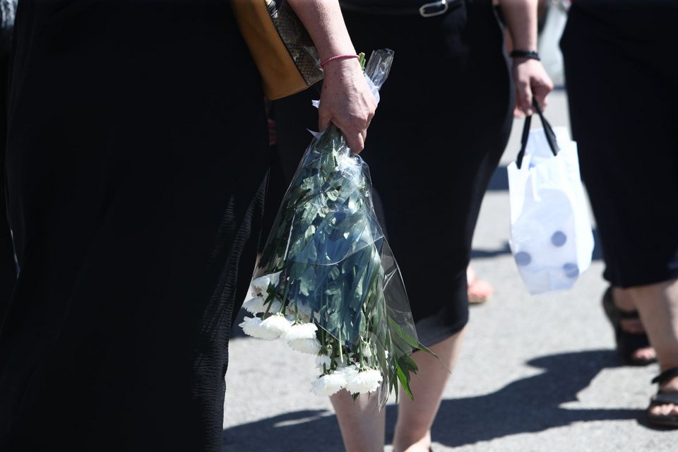 Στην εκκλησία βρέθηκαν συγγενείς και φίλοι του ανθυποσμηναγού, κρατώντας λίγα λουλούδια και φωτογραφίες του 27χρονου πιλότου.