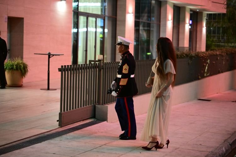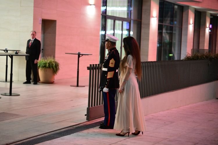 Η νέα Πρέσβης των ΗΠΑ Κίμπερλι Γκιλφόιλ, έφτασε στη γιορτή για τα 250 χρόνια από την ίδρυση του Σώματος των Αμερικανών Πεζοναυτών.