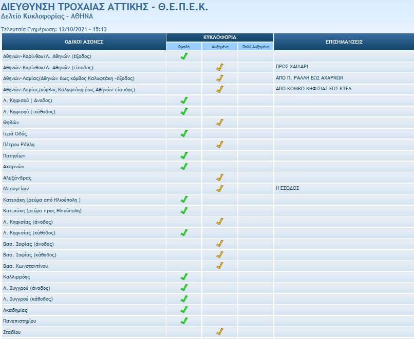 Επίσης, σύμφωνα με τη Διεύθυνση Τροχαίας Αττικής, κίνηση παρατηρείται στα εξής σημεία: