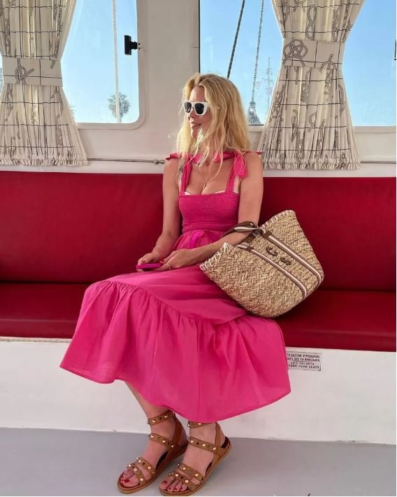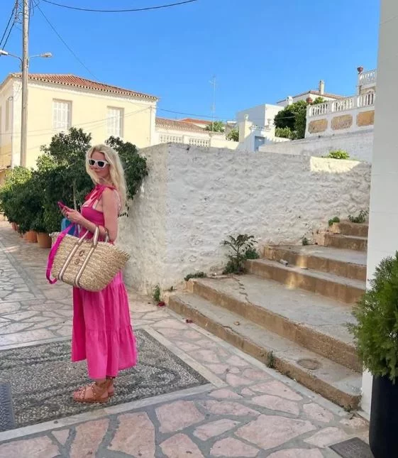 Φορώντας ένα φούξια φόρεμα, τα γυαλιά ηλίου της και κρατώντας μία ψάθινη τσάντα, η 51χρονη Γερμανίδα ποζάρει αρχικά μέσα από ένα πλοίο. Στο δεύτερο στιγμιότυπο, η Σίφερ χαμογελά στον φακό από τη στιγμή που απολαμβάνει τη βόλτα της στο νησί.