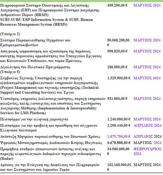 Σύστημα παρακολούθησης οχημάτων και εμπορευματοκιβωτίων, ανάπτυξη μητρώου παρακολούθησης του ιδιωτικού χρέους, προμήθεια σταθμών επικοινωνιών έκτακτης ανάγκης και παροχής κλιματολογικών δεδομένων περιοχών ενδιαφέροντος (Radar), πλατφόρμα για την ελληνική χειροτεχνία, αλλά και πλατφόρμα για την προβολή και προώθηση του σύγχρονου ελληνικού πολιτισμού, είναι ορισμένα από τα έργα που θα προκηρυχθούν από την Κοινωνία της Πληροφορίας τους επόμενους δύο με τρεις μήνες.