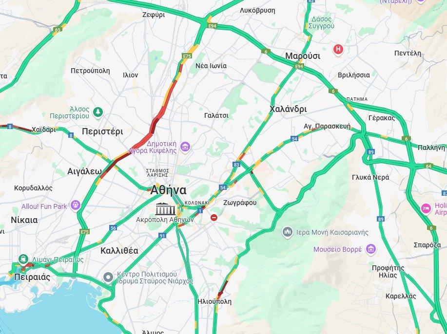 Αυξημένη είναι η κίνηση και στα δύο ρεύματα του Κηφισού από το πρωί εξαιτίας τροχαίων ατυχημάτων.