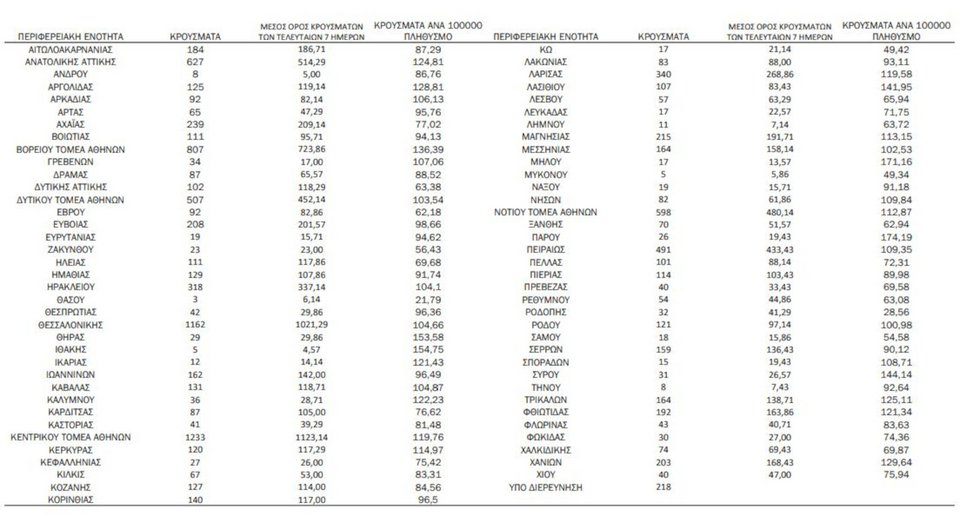 Τα κρούσματα του τελευταίου 24ώρου στην Αττική