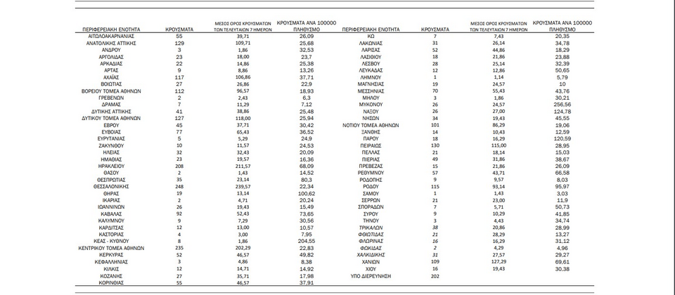 - 129 κρούσματα στην ΠΕ Ανατολικής Αττικής