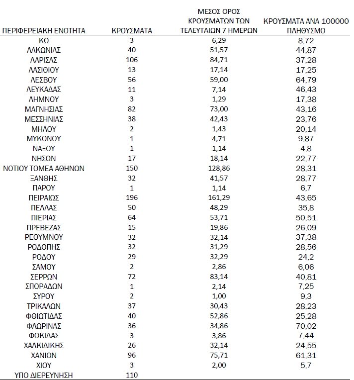 - 104 κρούσματα στην Π.Ε. Αχαΐας