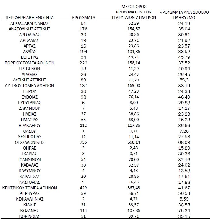- 176 κρούσματα στην ΠΕ Ανατολικής Αττικής