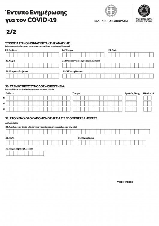 Αυτό είναι το ειδικό έντυπο που συμπληρώνουν επιβάτες λόγω κορωνοϊού