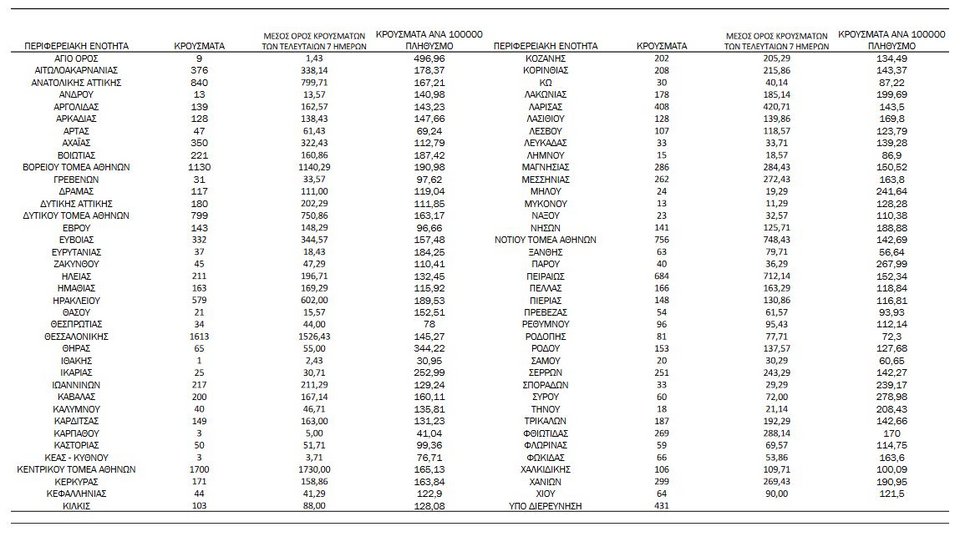 Ακολουθεί η κατανομή των κρουσμάτων κορωνοϊού: