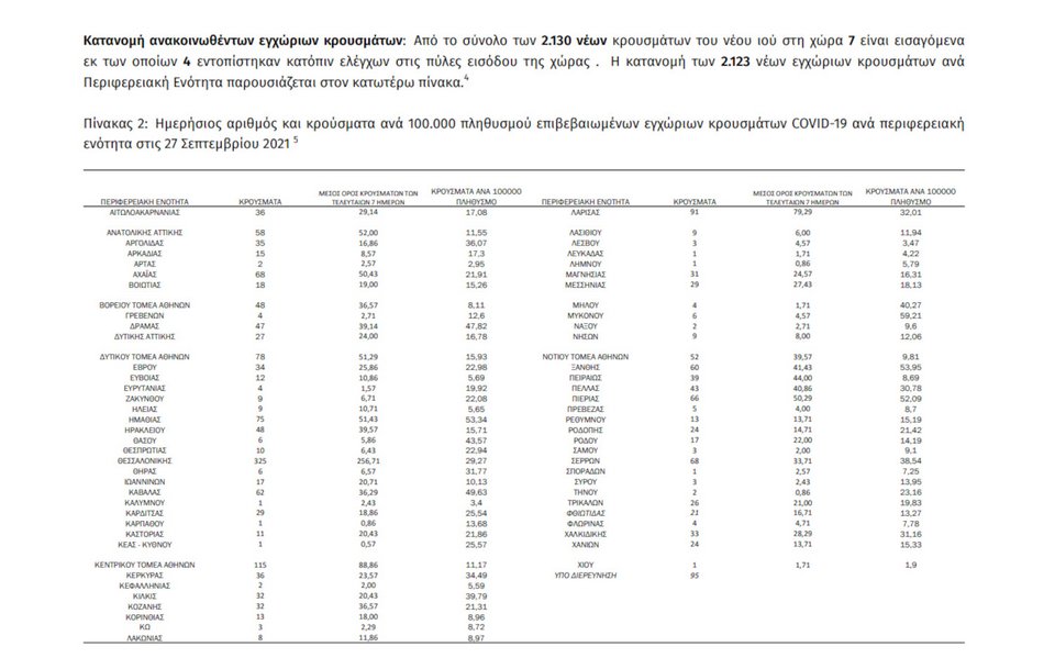 - Δυτική Αττική:27 κρούσματα