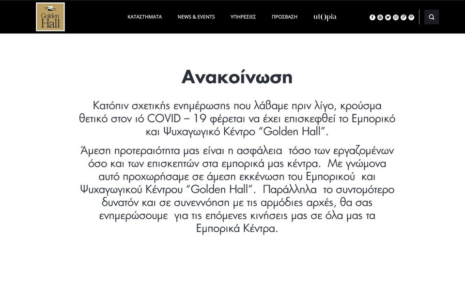 Νωρίτερα, εκκενώθηκε το εμπορικό κέντρο Golden Hall, ύστερα από κρούσμα κορωνοϊού.