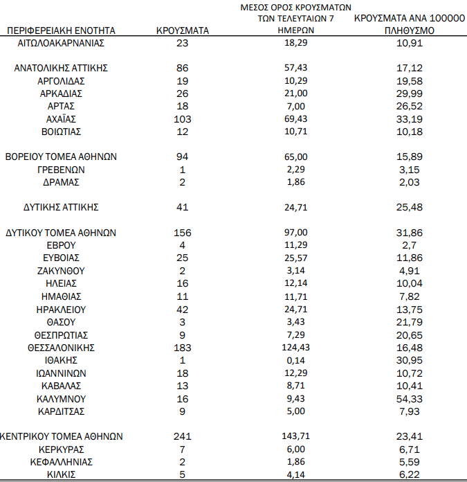 - 41 κρούσματα στην Π.Ε. Δυτικής Αττικής