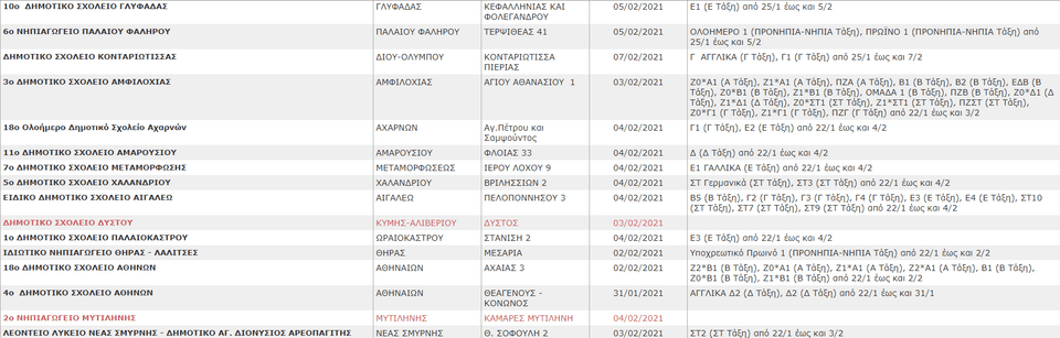 Μπορείτε, επίσης, καθημερινά να βλέπετε τη λίστα των σχολείων που παραμένουν κλειστά στην ιστοσελίδα του υπουργείου Υγείας.