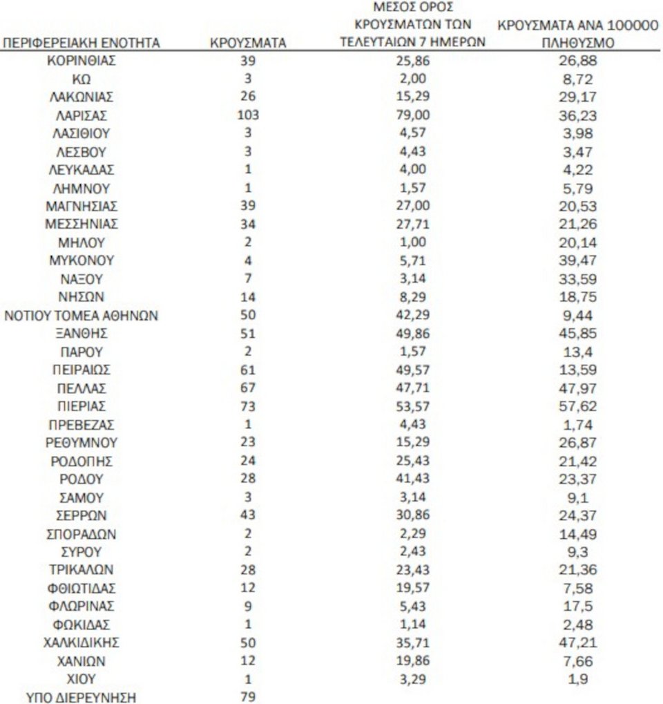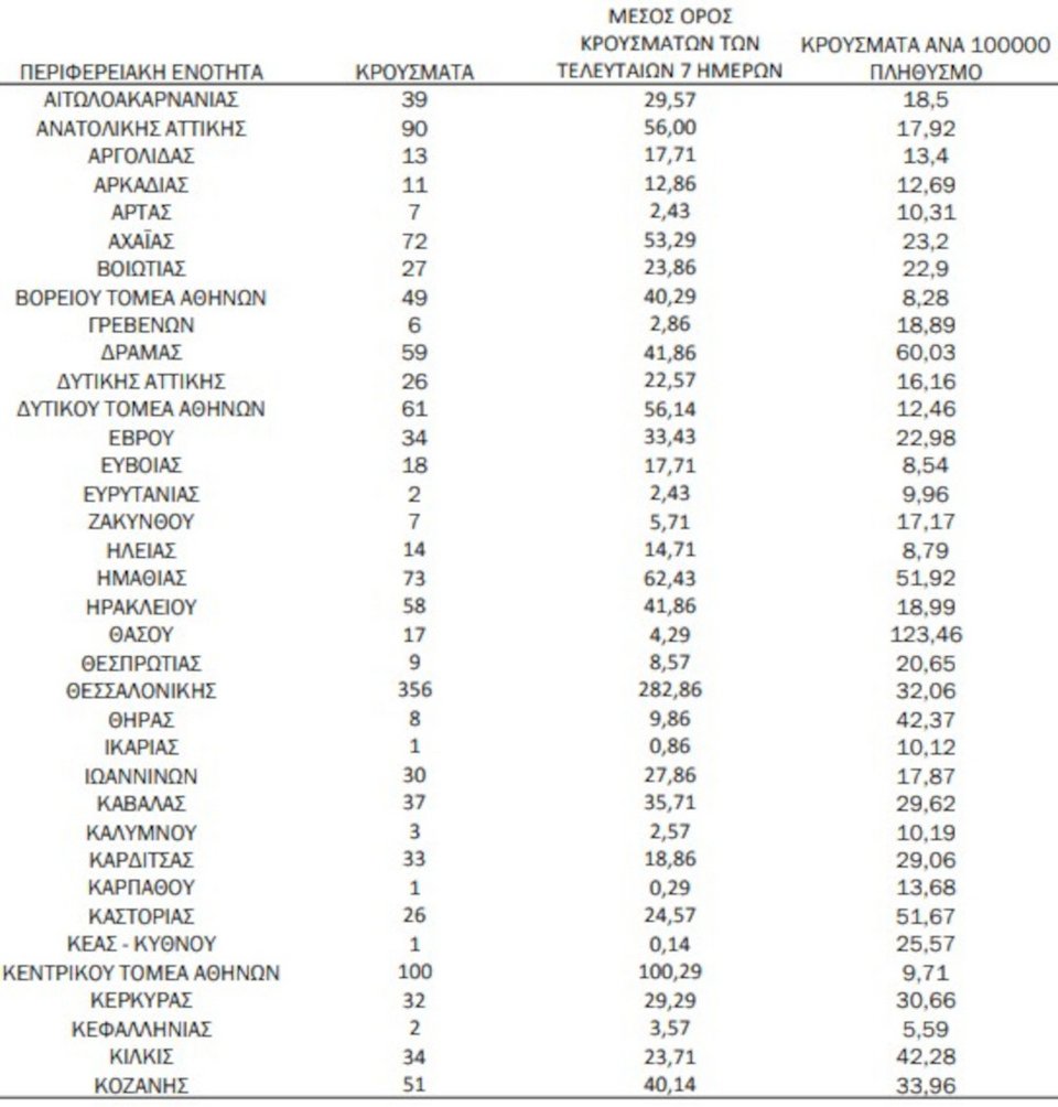 - Δυτική Αττική: 26 κρούσματα
