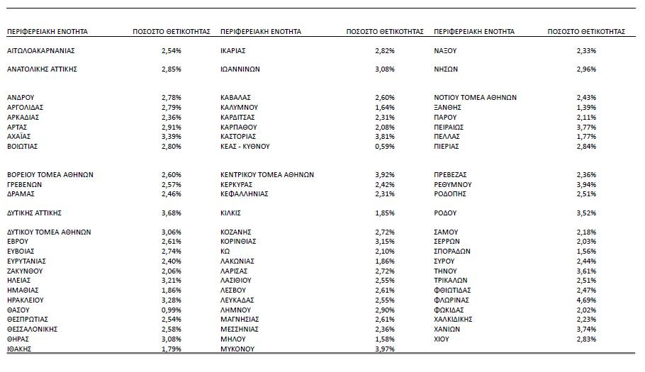 Ακολουθεί ο πίνακας με το ποσοστό θετικότητας στο σύνολο των ελέγχων ανά Περιφερειακή Ενότητα με δεδομένα από 10 Ιανουαρίου έως 16 Ιανουαρίου: