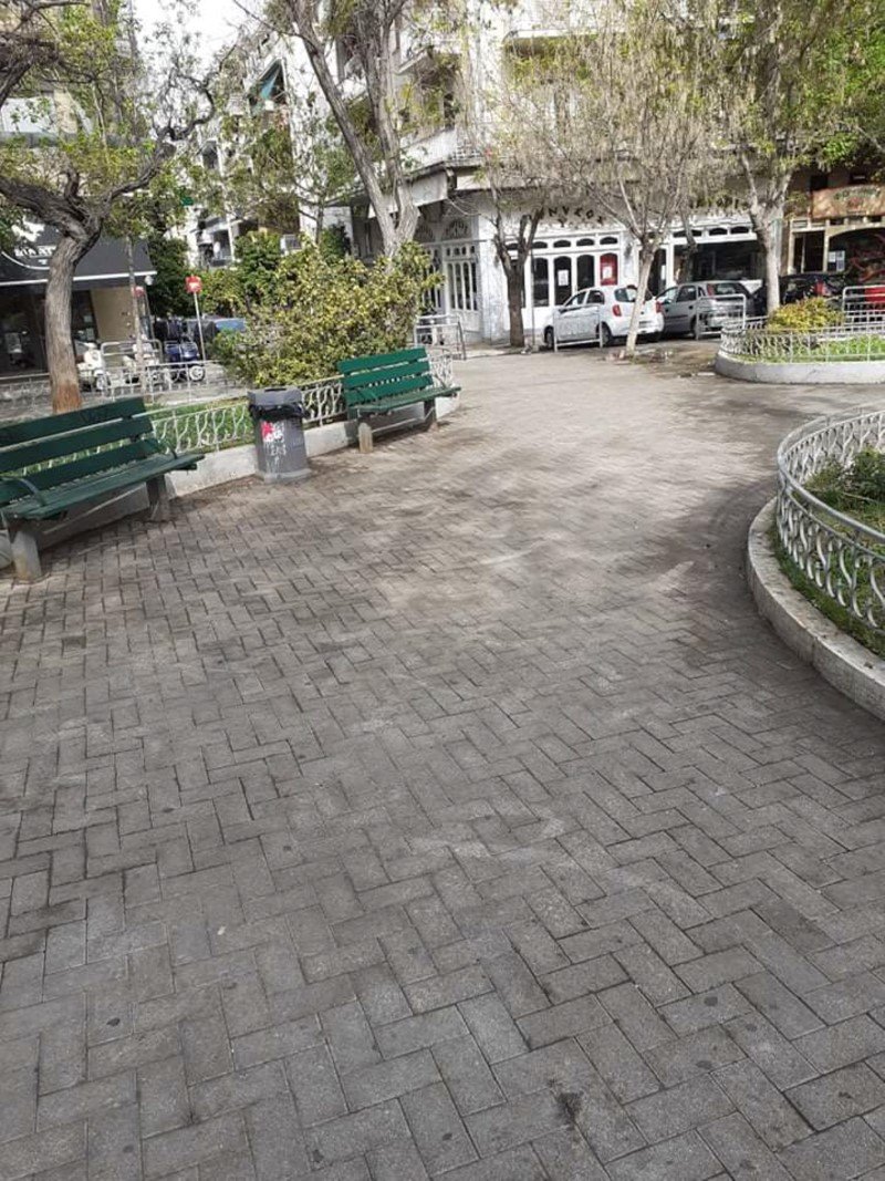 H πλατεία μετά την επιχείρηση των συνεργείων του δήμου Αθηναίων:
