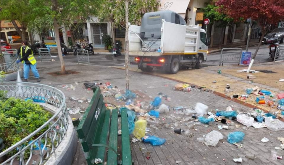 «Σκουπιδότοπο» άφησε πίσω του το κορωνοπάρτι που έγινε το βράδυ της Παρασκευής στη Κυψέλη με συνεργεία του Δήμου Αθηναίων να μαζεύουν 50 σακούλες σκουπιδιών από τη πλατεία Αγίου Γεωργίου.