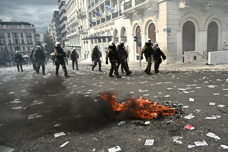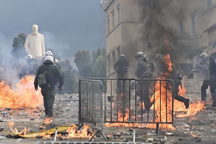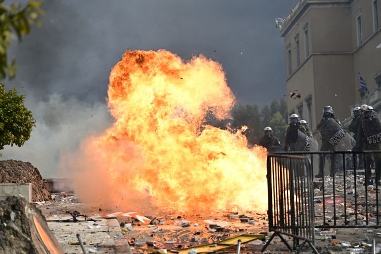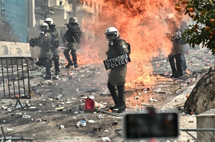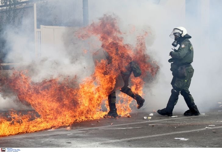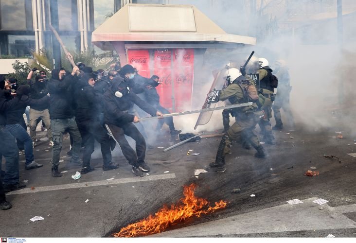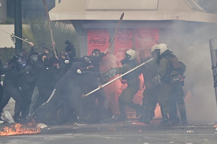 Σε πεδίο μάχης μετατράπηκε το κέντρο της Αθήνας, καθώς κουκουλοφόροι άρχισαν να εκτοξεύουν βόμβες μολότοφ μετά το συλλαλητήριο.