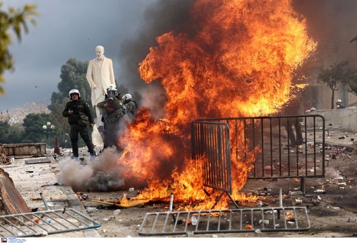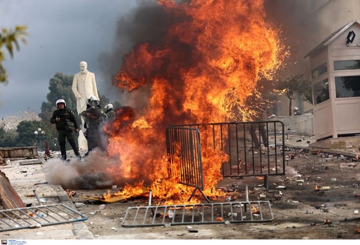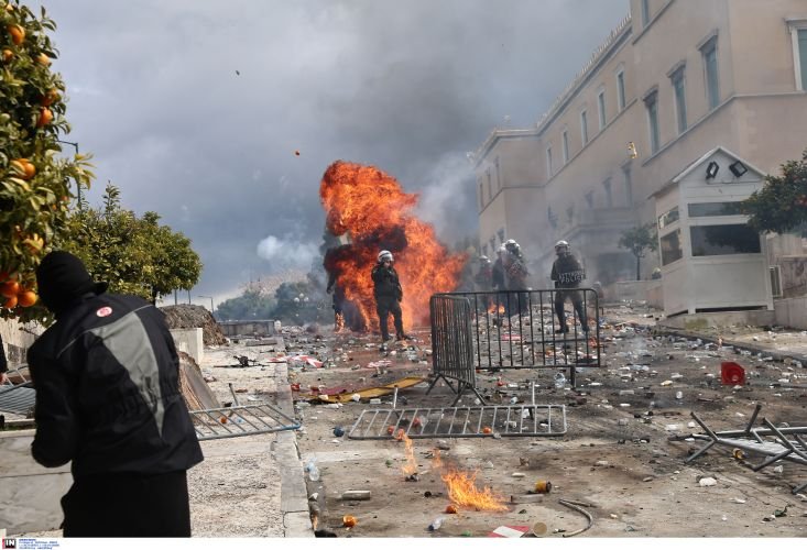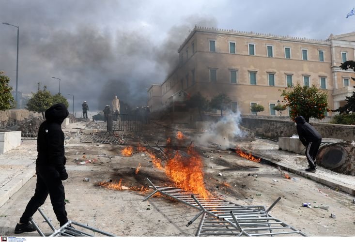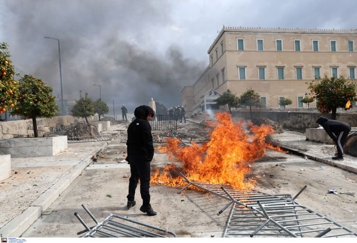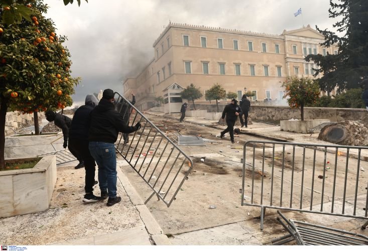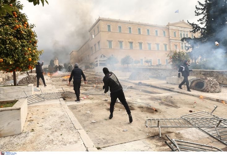 Όλα ξεκίνησαν μετά το τέλος των προγραμματισμένων ομιλιών στο συλλαλητήριο για τα Τέμπη, όταν ομάδα κουκουλοφόρων πέταξαν μολότοφ στον προαύλιο χώρο στο πλαϊνό μέρος της Βουλής. Στη συνέχεια, επενέβησαν δυνάμεις των ΜΑΤ, επιχειρώντας να απωθήσουν τους διαδηλωτές.