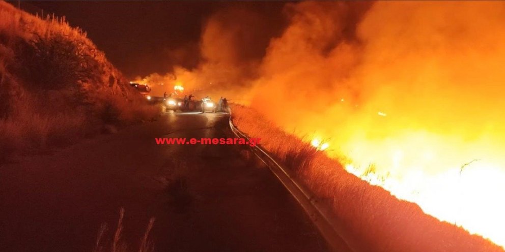 Καλύτερη είναι η εικόνα από τη φωτιά που ξέσπασε χθες το βράδυ σε χορτολιβαδική έκταση στη θέση Λόφος Προφήτη Ηλία ανάμεσα στον Αμπελούζο και τους Αγίους Δέκα στη Μεσαρά στην Κρήτη.