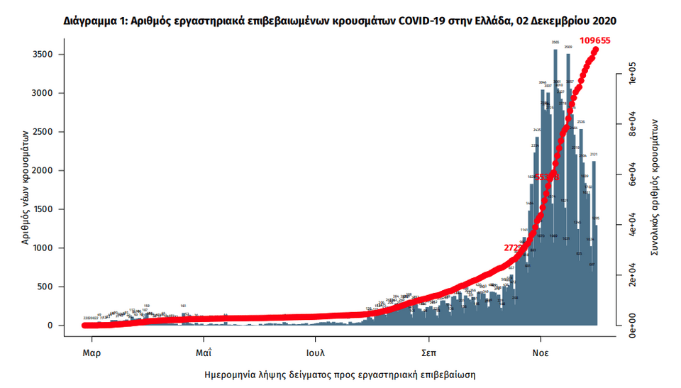 Το διάγραμμα κρουσμάτων κορωνοϊού στη χώρα μας έως τις 2 Δεκεμβρίου / ΕΟΔΥ