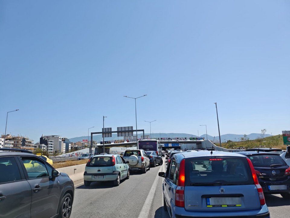 Κυκλοφοριακό χάος επικρατεί στην Ποσειδώνος, όπου τα αυτοκίνητα σχηματίζουν ουρές χιλιομέτρων.