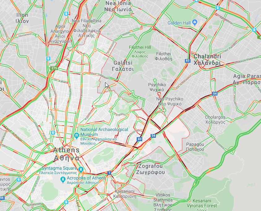 Δείτε τους δρόμους που η κίνηση είναι στο κόκκινο, όπως τους προβάλλει το Google Maps.
