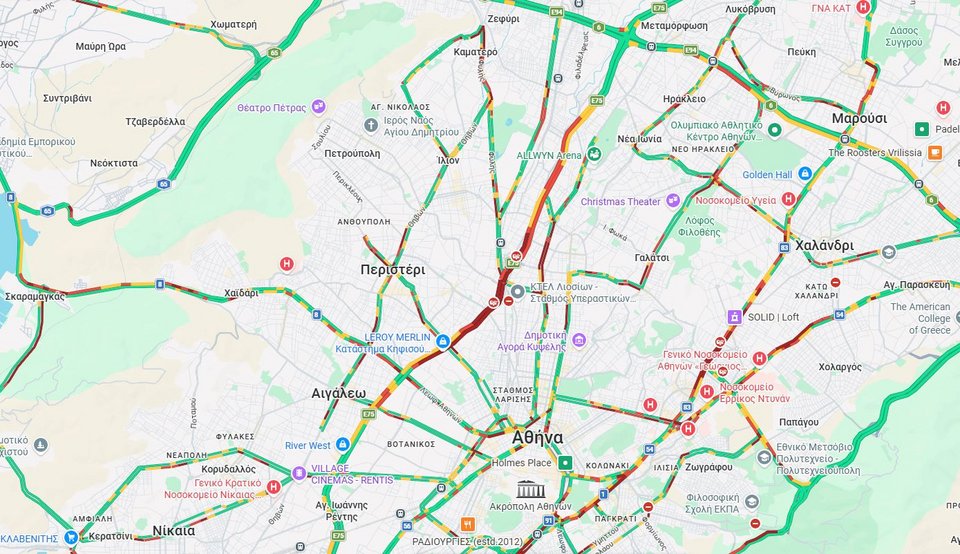 Λόγω της απεργίας των ταξί και των έργων στην Αττική Οδό, στο «κόκκινο» είναι αυτή την ώρα η Λεωφόρος Κηφισίας από το ύψος της Κηφισιάς μέχρι το ΚΑΤ, από το Άλσος Συγγρού μέχρι το Δαχτυλίδι και από το νοσοκομείο Υγεία μέχρι το President και στα δύο ρεύματα κυκλοφορίας.