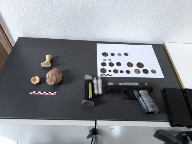Σύμφωνα με την ΕΛΑΣ, ο 54χρονος συνελήφθη το μεσημέρι της Μεγάλης Τετάρτης και σε βάρος του σχηματίστηκε δικογραφία για υπεξαίρεση μνημείων, παράβαση της υποχρέωσης δήλωσης μνημείου και της υποχρέωσης δήλωσης ανιχνευτών μετάλλων ή άλλων οργάνων διασκόπησης, καθώς και παράβαση της νομοθεσίας για τα όπλα.