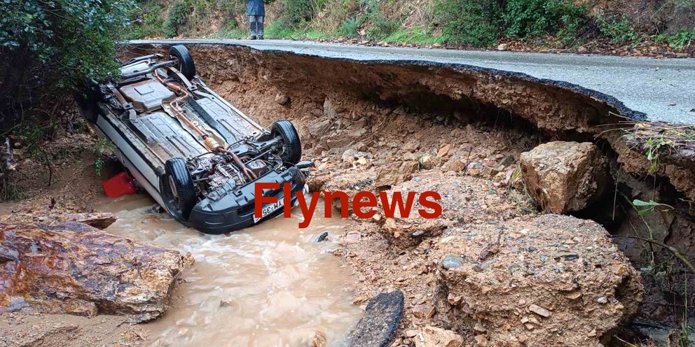 Μάλιστα, τη στιγμή της καθίζησης, διερχόταν ΙΧ αυτοκίνητο, το οποίο εξετράπη της πορείας του και ανετράπη μέσα σε χείμαρρο που είχε σχηματιστεί από τα νερά της βροχής. Ο οδηγός κατάφερε να απεγκλωβιστεί και είναι καλά στην υγεία του, αποφεύγοντας τα χειρότερα.