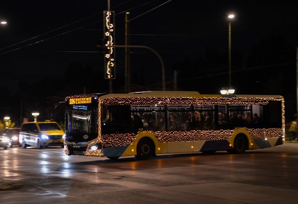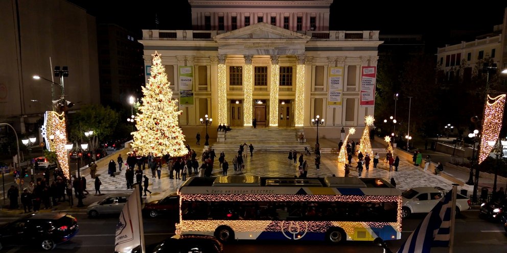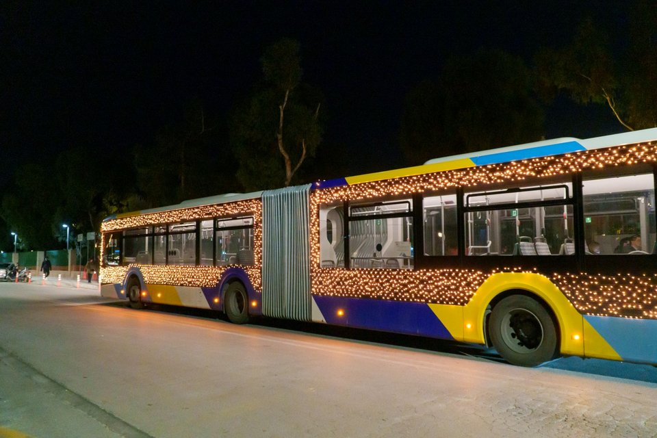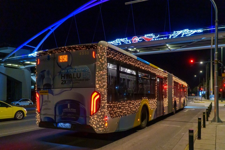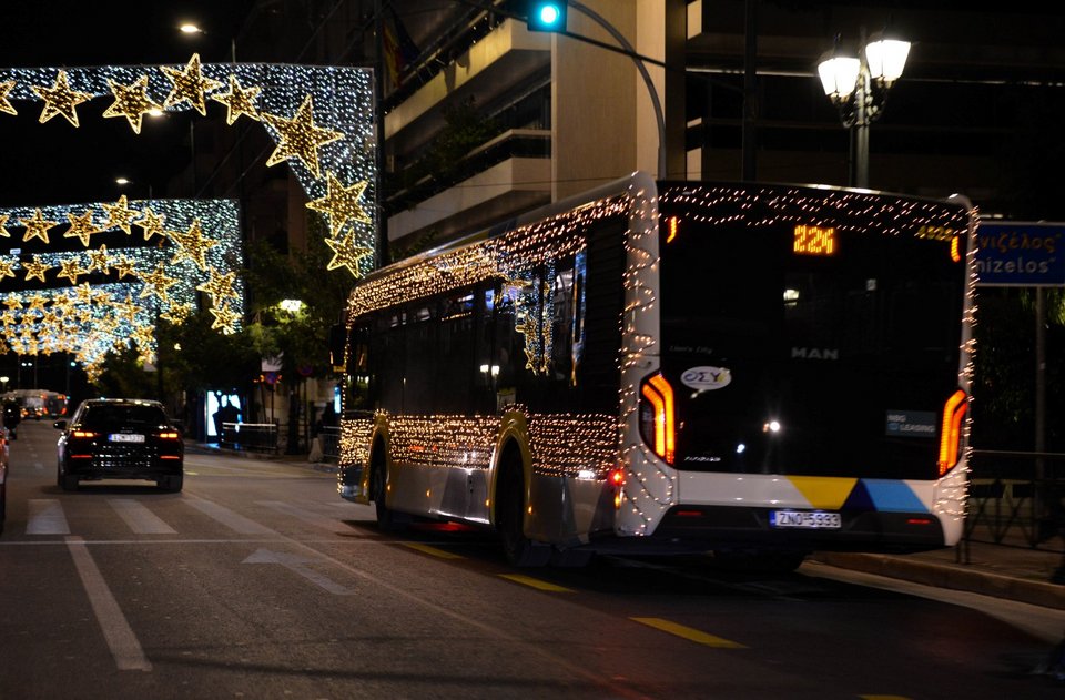Εναρμονισμένα με το γιορτινό κλίμα, έξι λεωφορεία της ΟΣΥ (Οδικές Συγκοινωνίες) σε Αθήνα και Πειραιά πραγματοποιούν διαδρομές «ντυμένες» με φως.