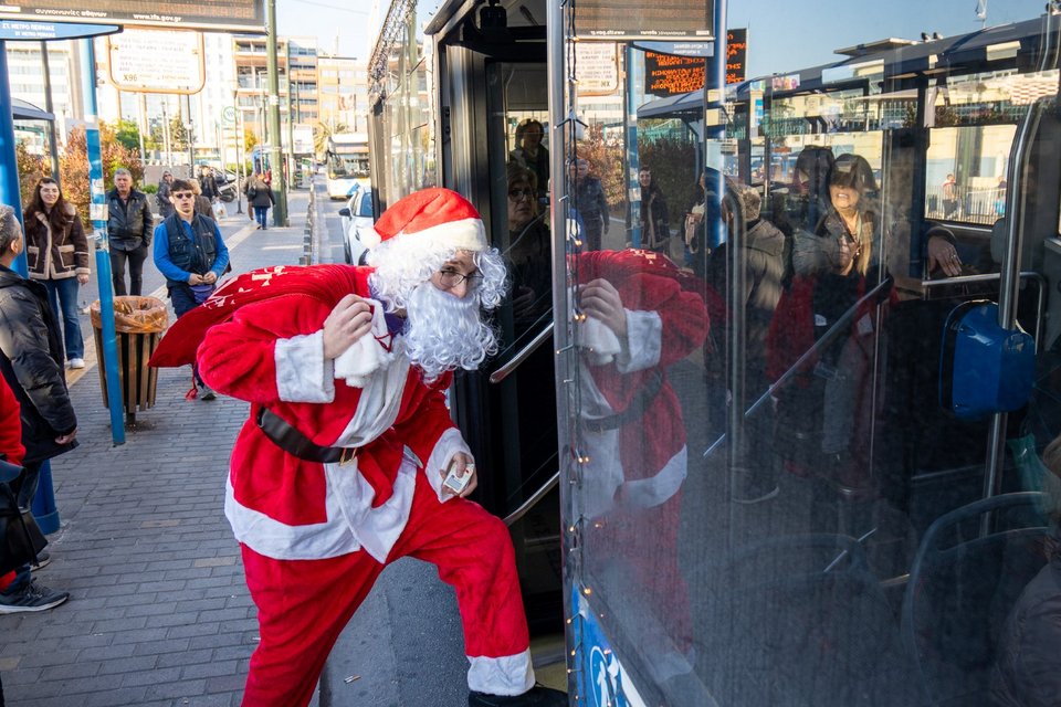 Ο Άγιος Βασίλης επέλεξε από τη Δευτέρα 29/12/2025 μέχρι και την παραμονή των Φώτων να μετακινηθεί με τα λεωφορεία ως επιβάτης και να μοιράσει Πρωτοχρονιάτικα δωρο-λαχεία - έκπληξη στους πολίτες.