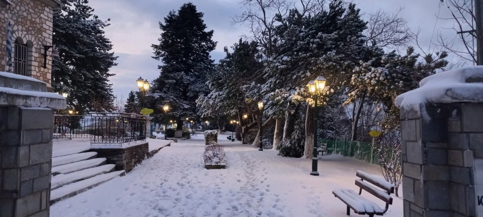 Δείτε εικόνες από τα χιόνια στο Λιβάδι Ελασσόνας, στη Λάρισα: