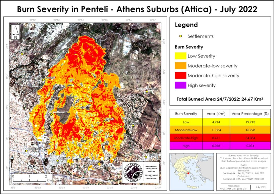 Δεδομένα που συνέλεξαν από το πεδίο, από μη Επανδρωμένα Αεροσκάφη και από δορυφορικές εικόνες, οδήγησαν τους Επιστήμονες του ΕΚΠΑ και του Χαροκόπειου Πανεπιστημίου Αθηνών σς 8 βασικά συμπεράσματα για τη φωτιά στην Πεντέλη.