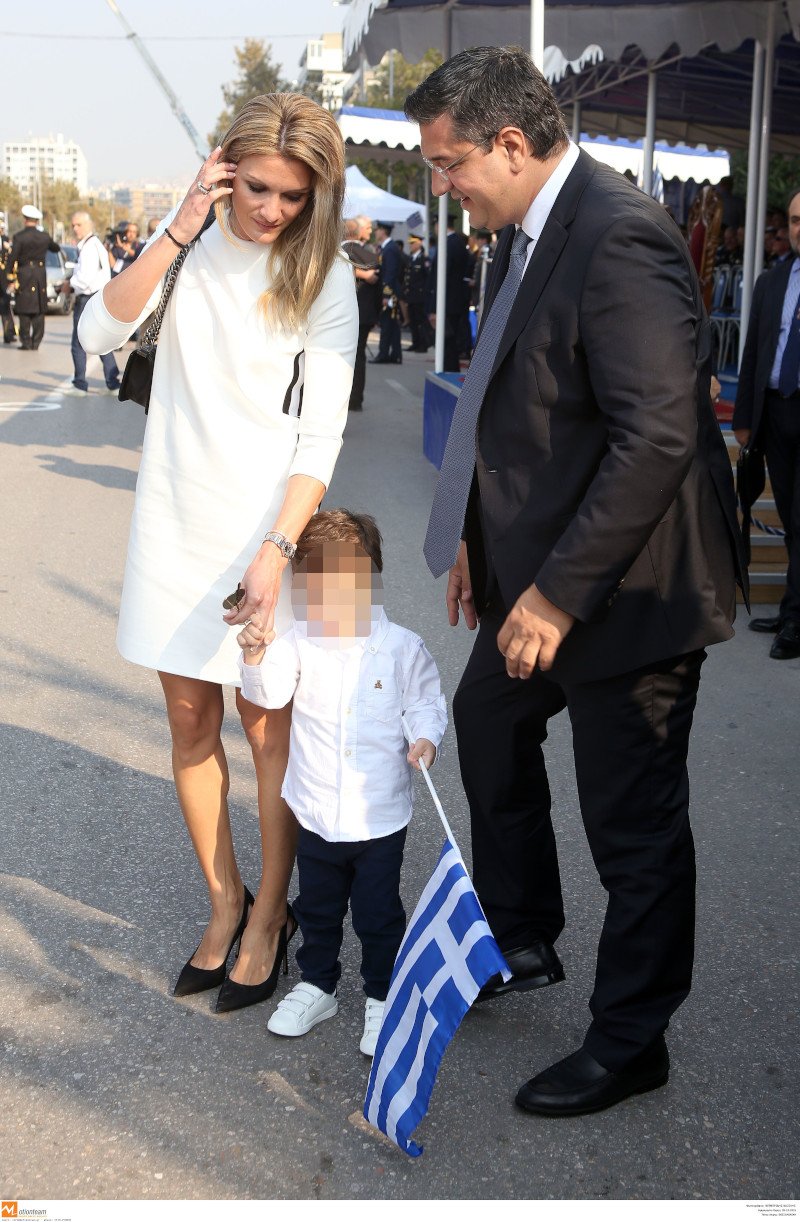 Η Ελενα Βλάχου, σύζυγος Τζιτζικώστα, με τον γιο της στην παρέλαση