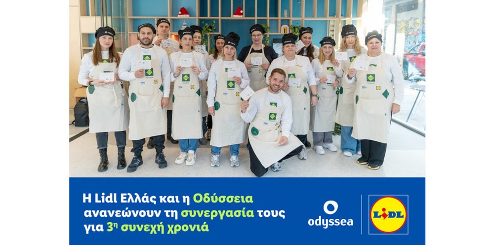 Για 3η συνεχή χρονιά, η Lidl Ελλάς και η Οδύσσεια ενώνουν τις δυνάμεις τους, επιβεβαιώνοντας τη δέσμευσή τους για τη στήριξη συνανθρώπων μας που βρίσκονται σε ανάγκη. Μέσα από τις καθιερωμένες πλέον πρωτοβουλίες «Ένα Γεύμα Χαράς» και «Κούτες Αγάπης» που υλοποιούνται με δυναμική εθελοντική συμμετοχή στη Θεσσαλονίκη, η συνεργασία επεκτείνεται και στην Αθήνα, προσφέροντας ουσιαστική ανακούφιση και καλλιεργώντας μια βιώσιμη κουλτούρα γύρω από το φαγητό.