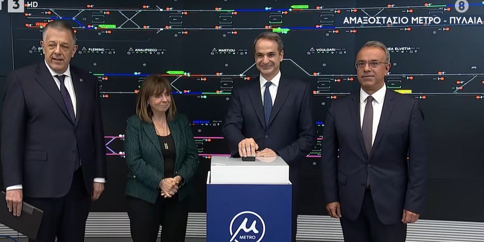 Στο Αμαξοστάσιο της Πυλαίας ξεκίνησε και επίσημα η λειτουργία του Μετρό της Θεσσαλονίκης, με τον πρωθυπουργό Κυριάκο Μητσοτάκη να πατάει λίγο πριν τις 13:30 το κουμπί.