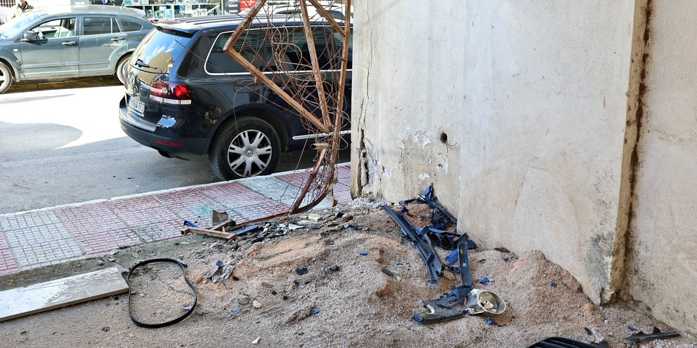 Το αυτοκίνητο σταμάτησε, τελικά, στη σιδερένια περίφραξη διπλανής οικίας.