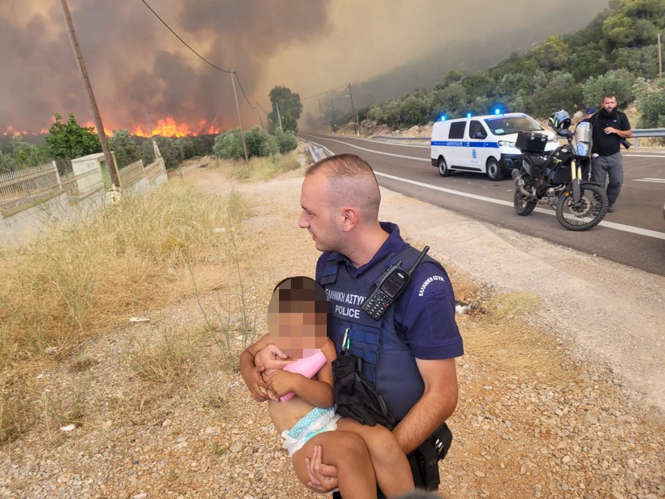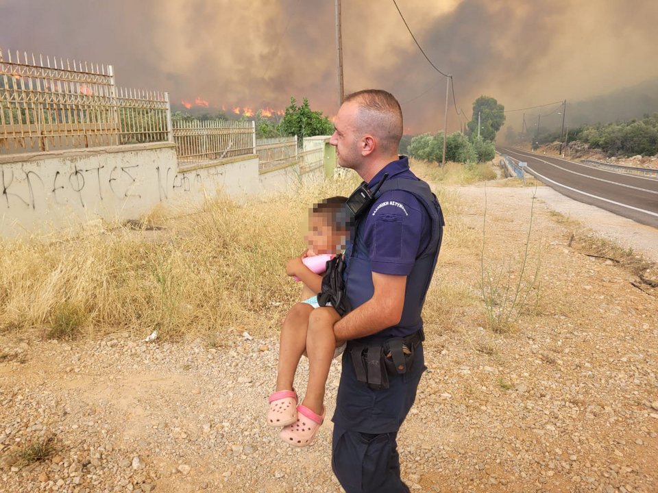 Νωρίτερα, αστυνομικός απομάκρυνε από σπίτι ένα μικρό παιδί, καθώς οι φλόγες πλησίαζαν.