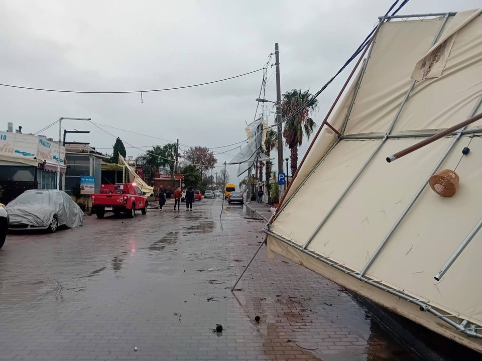 Ειδικότερα, σύμφωνα με το anatolika24.gr, οι δυνατές ριπές του ανέμου ξήλωσαν τέντες από καταστήματα στην Παραλία του Μαραθώνα, με τα αποκολλημένα τμήματα να παρασύρονται από τον αέρα, δημιουργώντας κινδύνους για πεζούς και οχήματα.