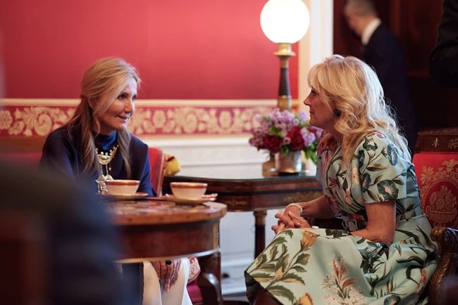 Μάλιστα, η σύζυγος του Κυριάκου Μητσοτάκη και οι κόρες της είχαν κατ' ιδίαν συνάντηση με την Πρώτη Κυρία των ΗΠΑ, Τζιλ Μπάιντεν, στον Λευκό Οίκο, με τις τέσσερις γυναίκες να συνομιλούν για αρκετή ώρα και σε ιδιαιτέρως φιλικό και χαλαρό κλίμα.