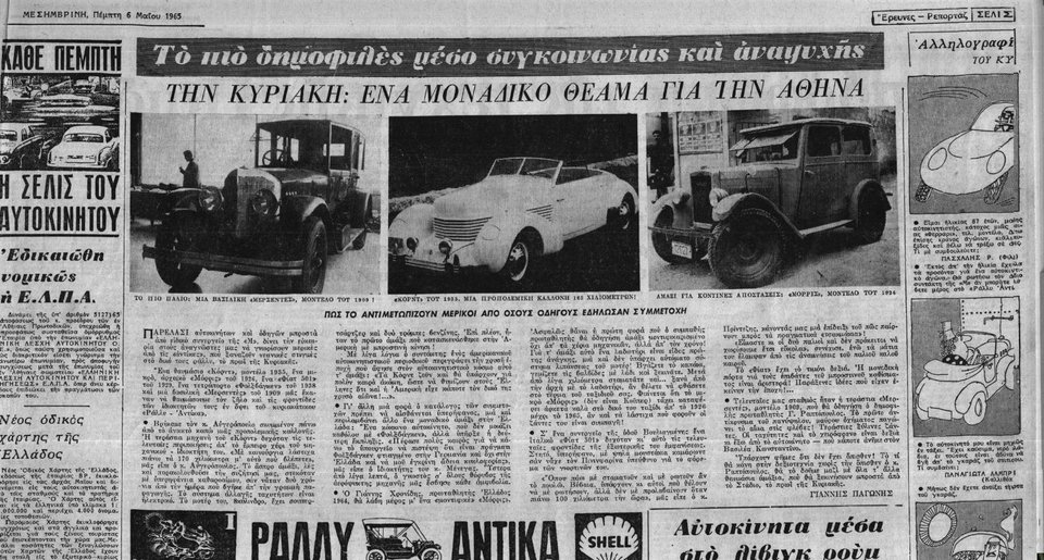 Ήταν το «Ράλλυ Αντίκα» που, χρόνια μετά, γέννησε και τη Λέσχη Φίλων Παλαιού Αυτοκινήτου αλλά και όλα τα μεταγενέστερα που προέκυψαν, καθώς το αυτοκίνητο, από είδος πολυτελείας έγινε σπορ πτωχών (όπως εγώ, π.χ., που έτρεχα με ένα ψευτοπουσαρισμένο Skoda) και πλουσίων (όπως ο Τζώνης Πεσματζόγλου που είχε Corvette) και οι αγώνες ήρθαν ξαφνικά να ανακατώσουν τις καθημερινές εφημερίδες.