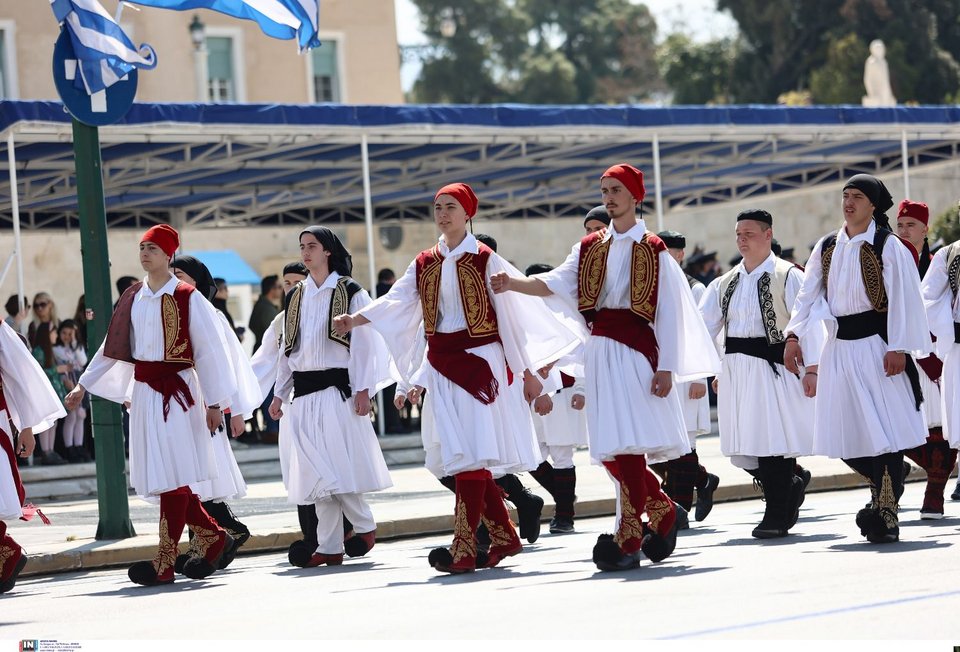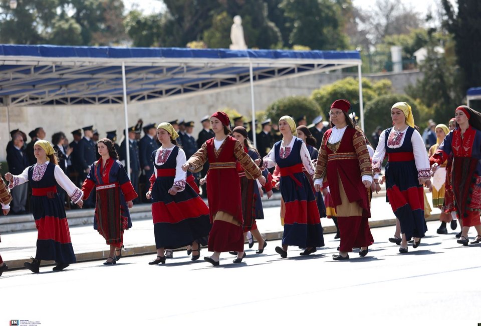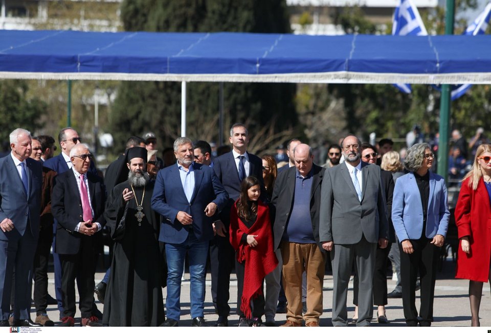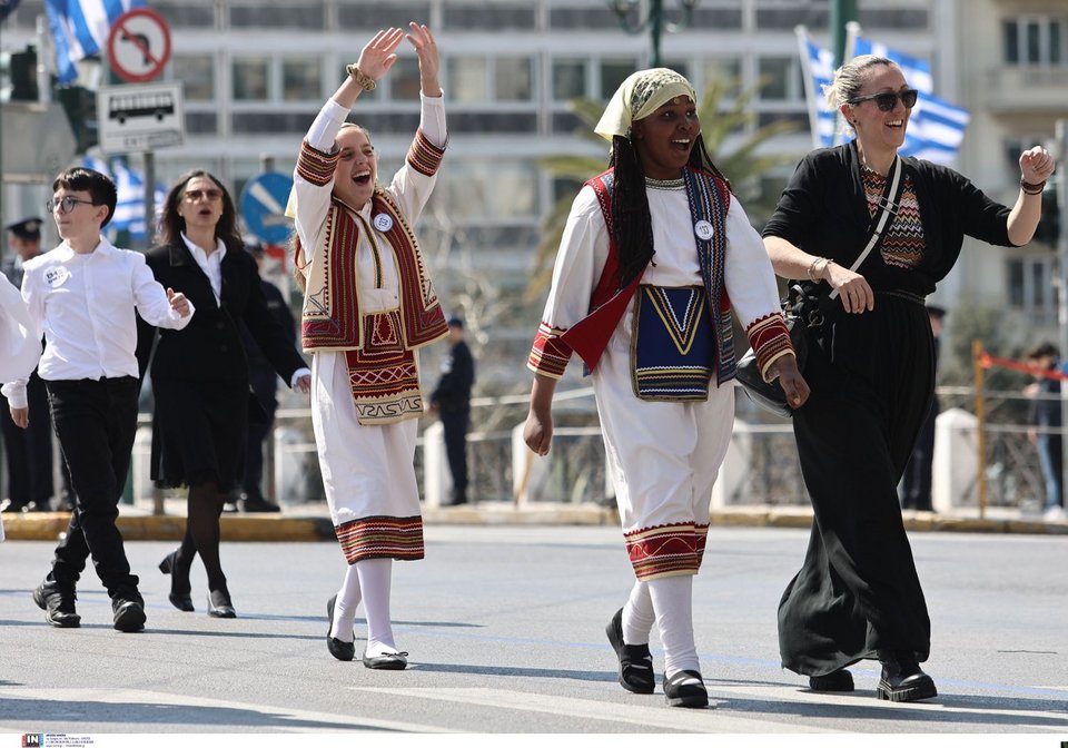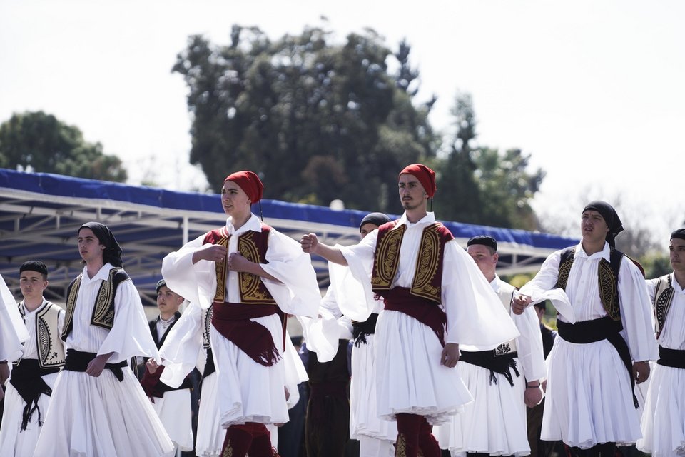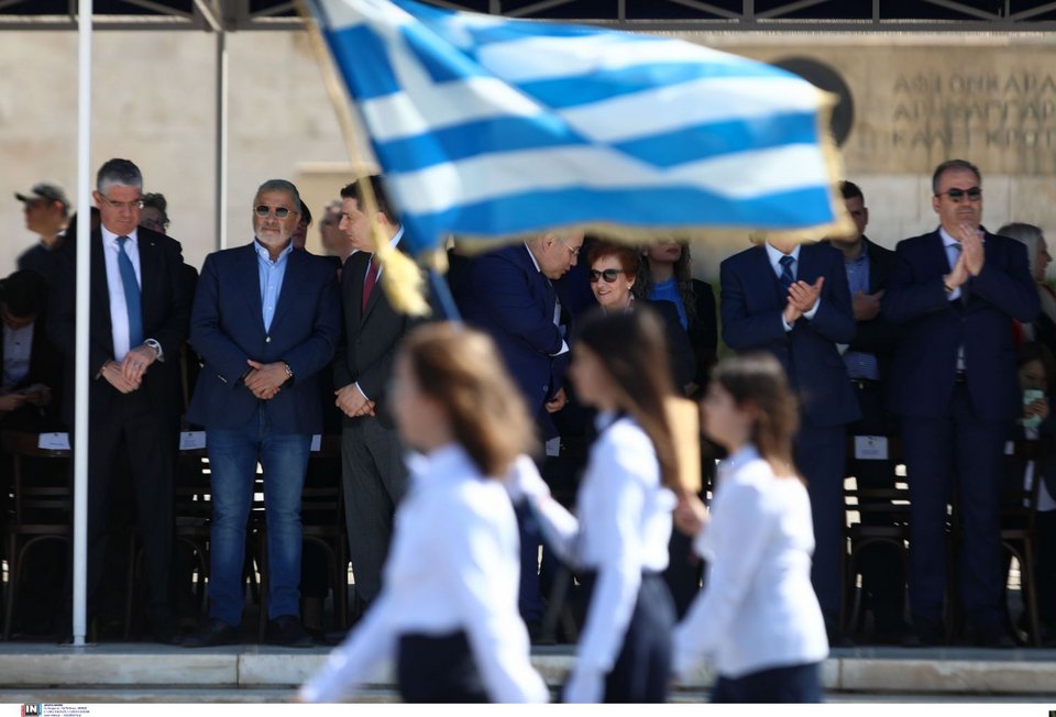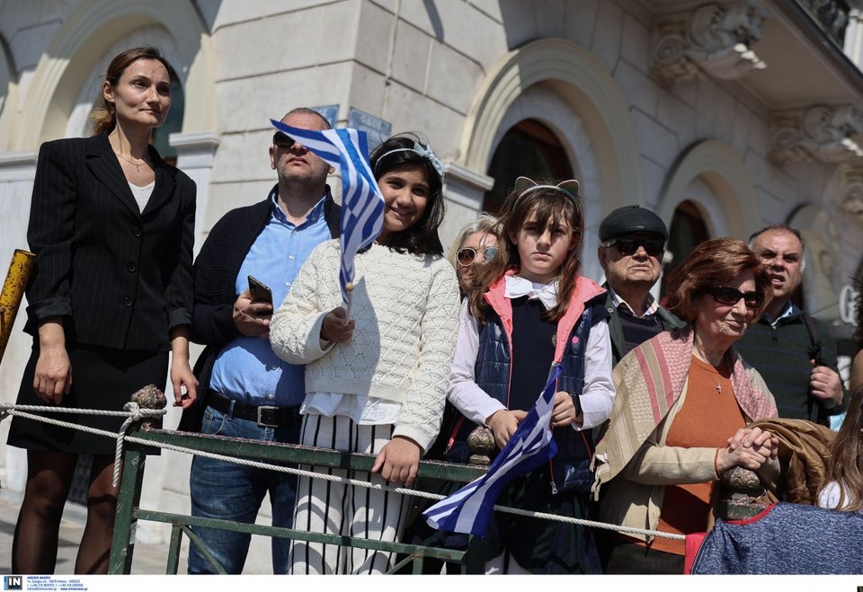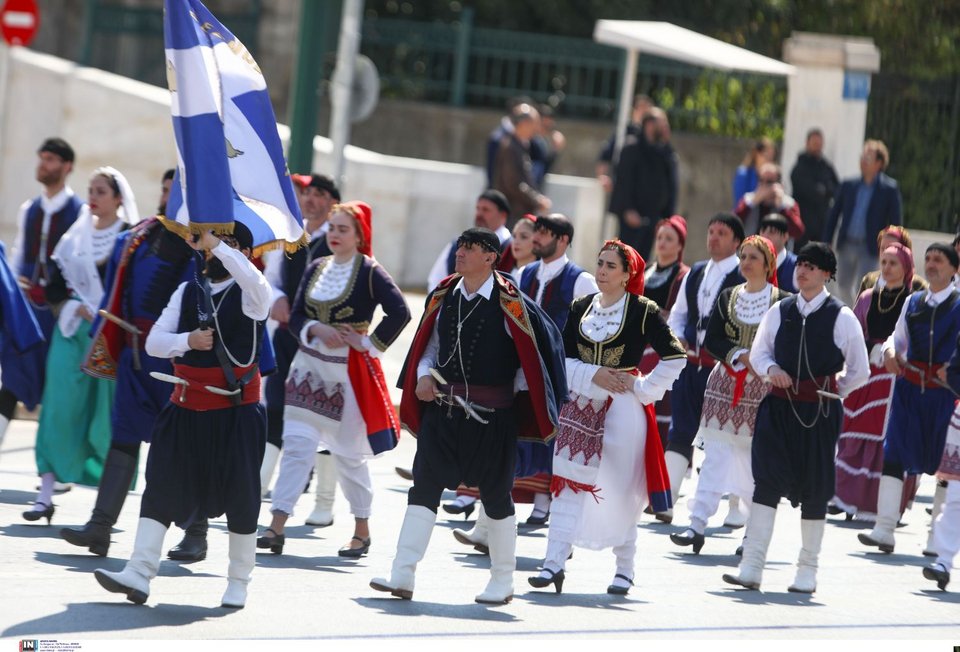 Ο καιρός ήταν σύμμαχος στη φετινή παρέλαση, με τους μαθητές να παρελαύνουν με τις στολές του σχολείου, τις καθιερωμένες μπλε-άσπρες φορεσιές, ή παραδοσιακές στολές για την 25η Μαρτίου.